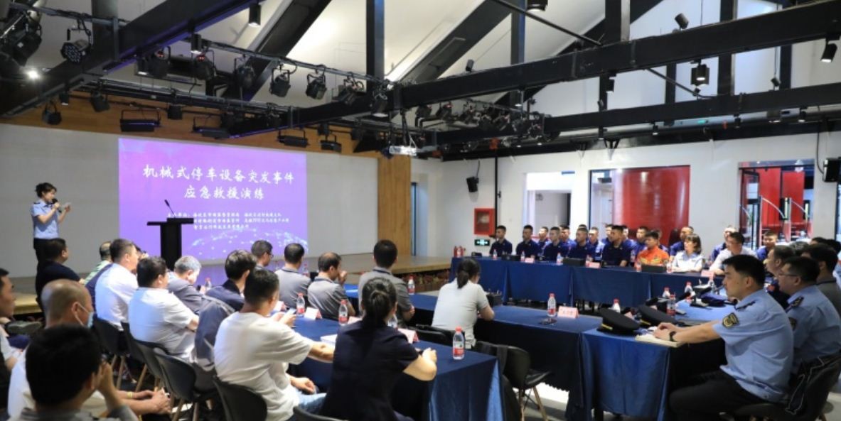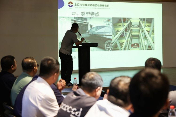 【新京报6月4日讯】在全国“安全生产月”期间,6月4日,海淀区政府在项目开展立体车库升降设备事故应急救援演练。该演练由海淀区市场监管局与海淀区消防救援支队主办,多单位及企业代表参与。图为北京市特种设备检验检测研究院工程师向来自海淀区各个基层消防救援站的指战员详细讲解电梯、起重机械等设备运行原理、困人应急救援方法、救援风险点及安全注意事项等相关知识。
