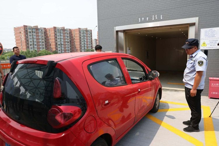 演练模拟汽车升降机断电致小汽车及车内人员被困,厂家技术人员与消防指战员联合救援,通过一系列程序成功解救被困人员。