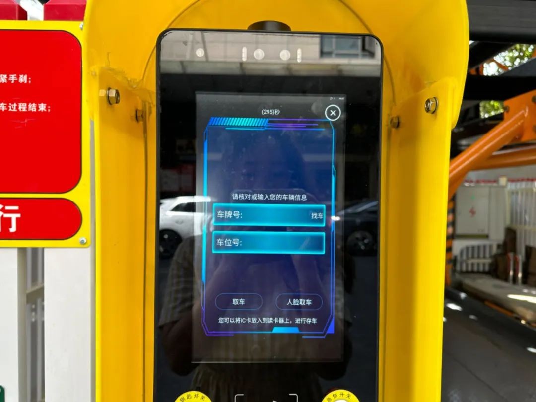 取车时,车主可通过在智慧操作终端上刷脸取车或输入车位号码等方式,自动控制系统便可将车自动运送下来,等待车位停稳即可取车。